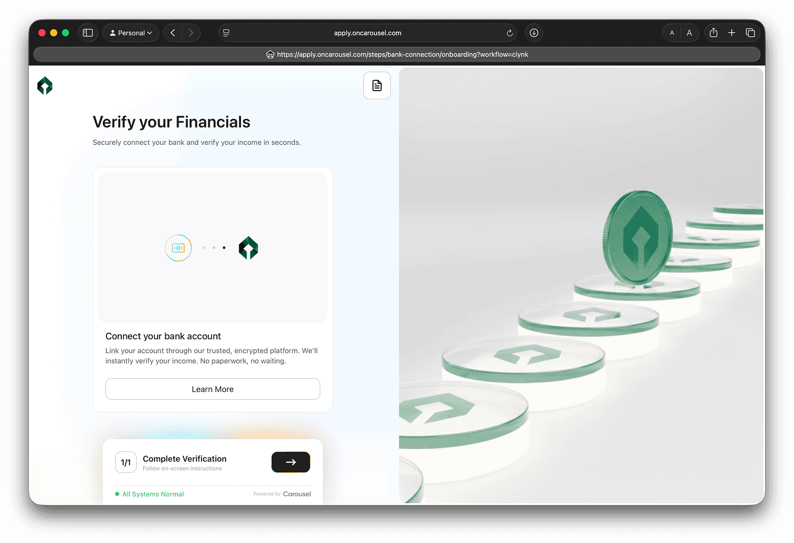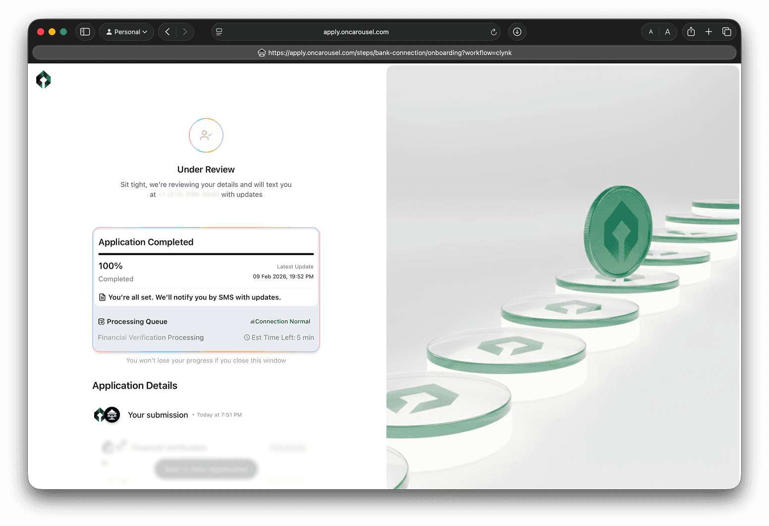 Once verified, Carousel intelligently routes your application so you can receive offers and access funding without delays.